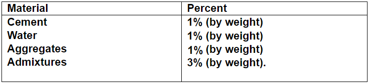 Selected cement type I shall comply with the ASTM C150; the laboratory manager at the batching plant should check the cement delivery test certificate for each cement delivery for the following criteria of acceptance:
